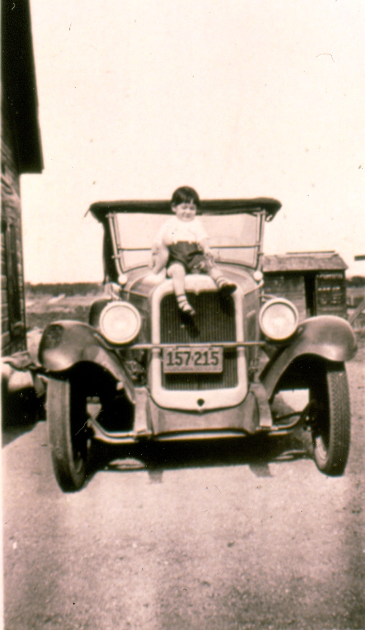 Toddler on the hood of a car