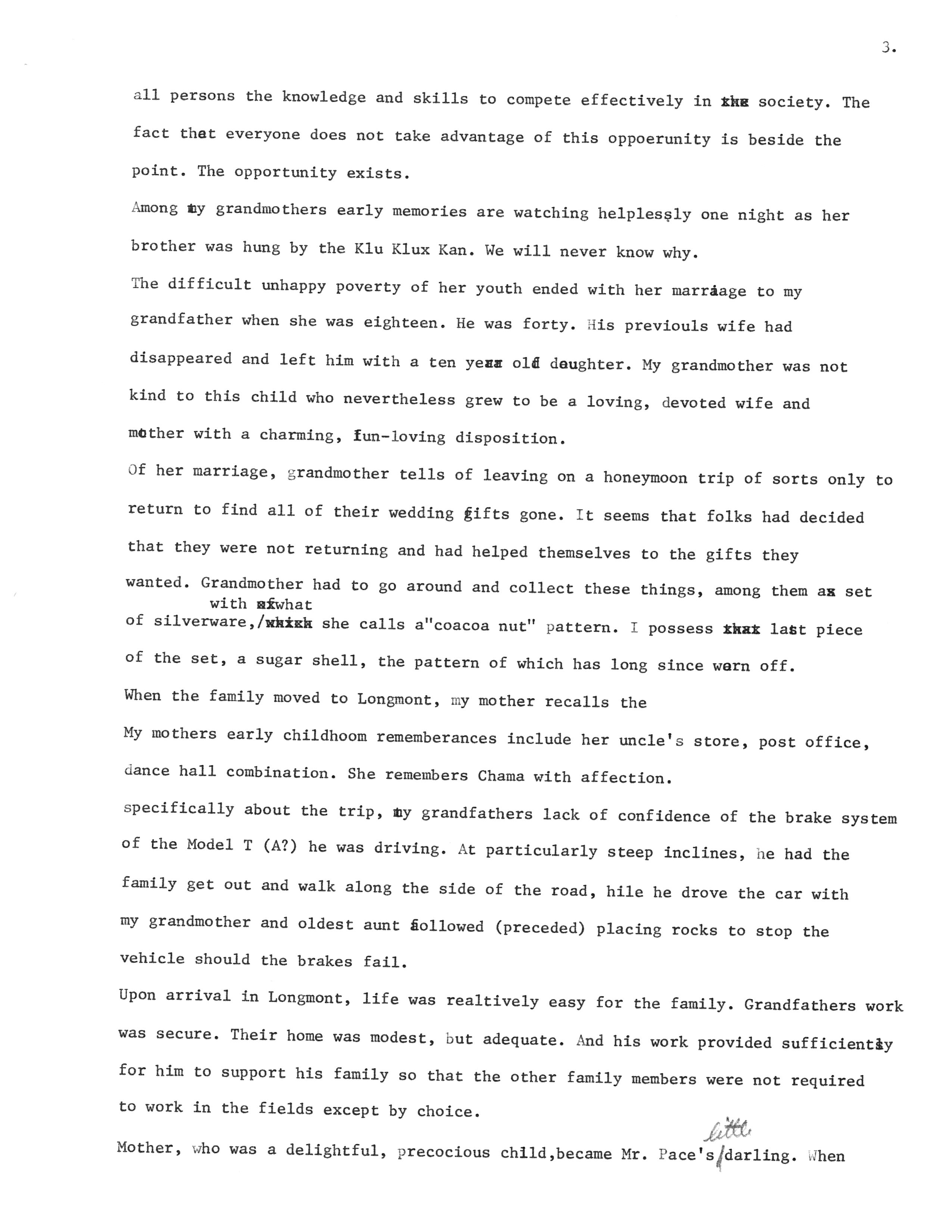 "Some Notes Regarding Major Differences between Longmont and the Chama Valley"