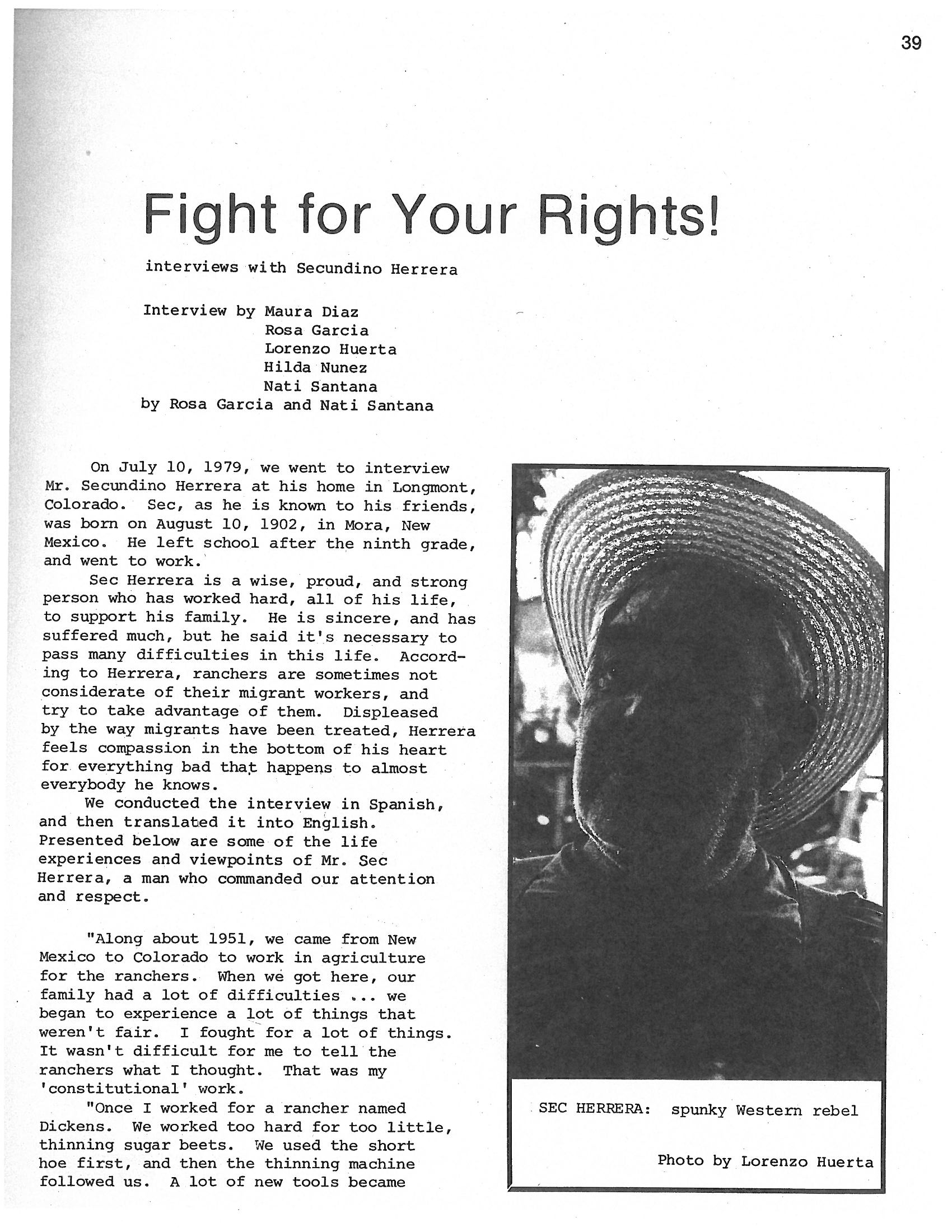“"Fight for Your Rights!": El Aguila interview with Secundino Herrera,” Boulder County Latino History Project, accessed March 6, 2026, https://latinohistoryproject.org/boulder/items/show/3123.