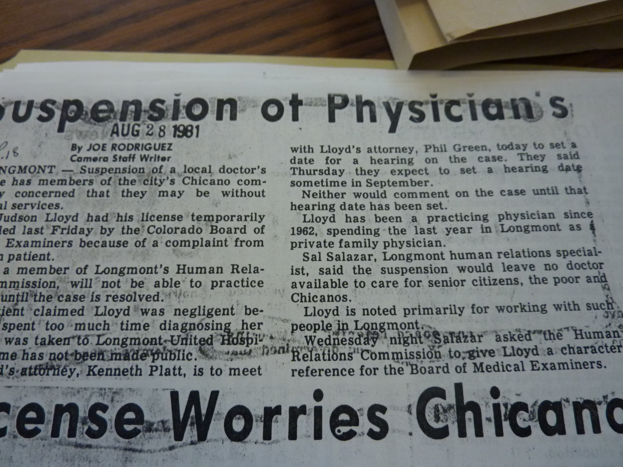 “Suspension of Physician's License worries Chicano Community,” Boulder County Latino History Project, accessed March 6, 2026, https://latinohistoryproject.org/boulder/items/show/3231.